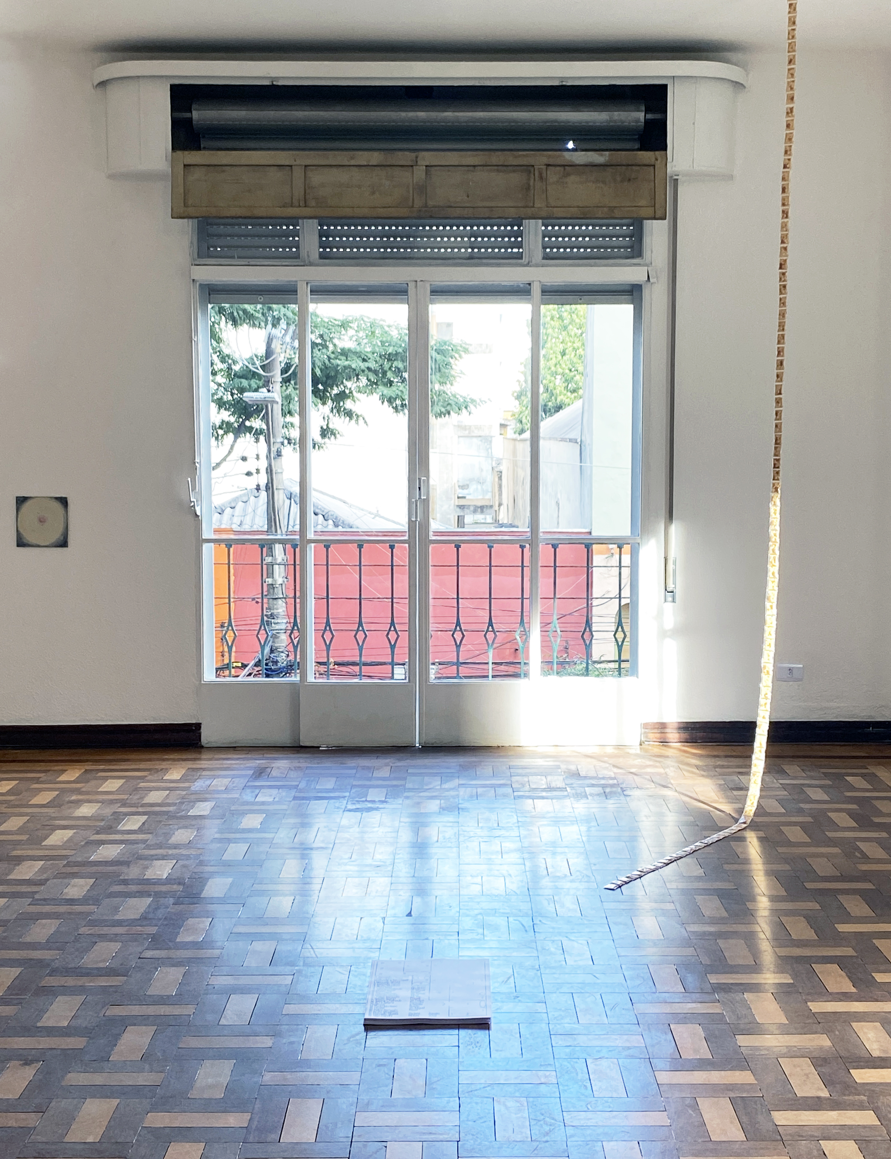Neste trabalho, um armário de trilho de cortina abriga um mecanismo luminoso oculto. Enquanto o trilho da cortina opera na vertical, regulando a entrada de luz natural em um ambiente, um segundo trilho, agora de luz artificial, percorre a estrutura em um movimento horizontal, circulando o mecanismo preexistente.
